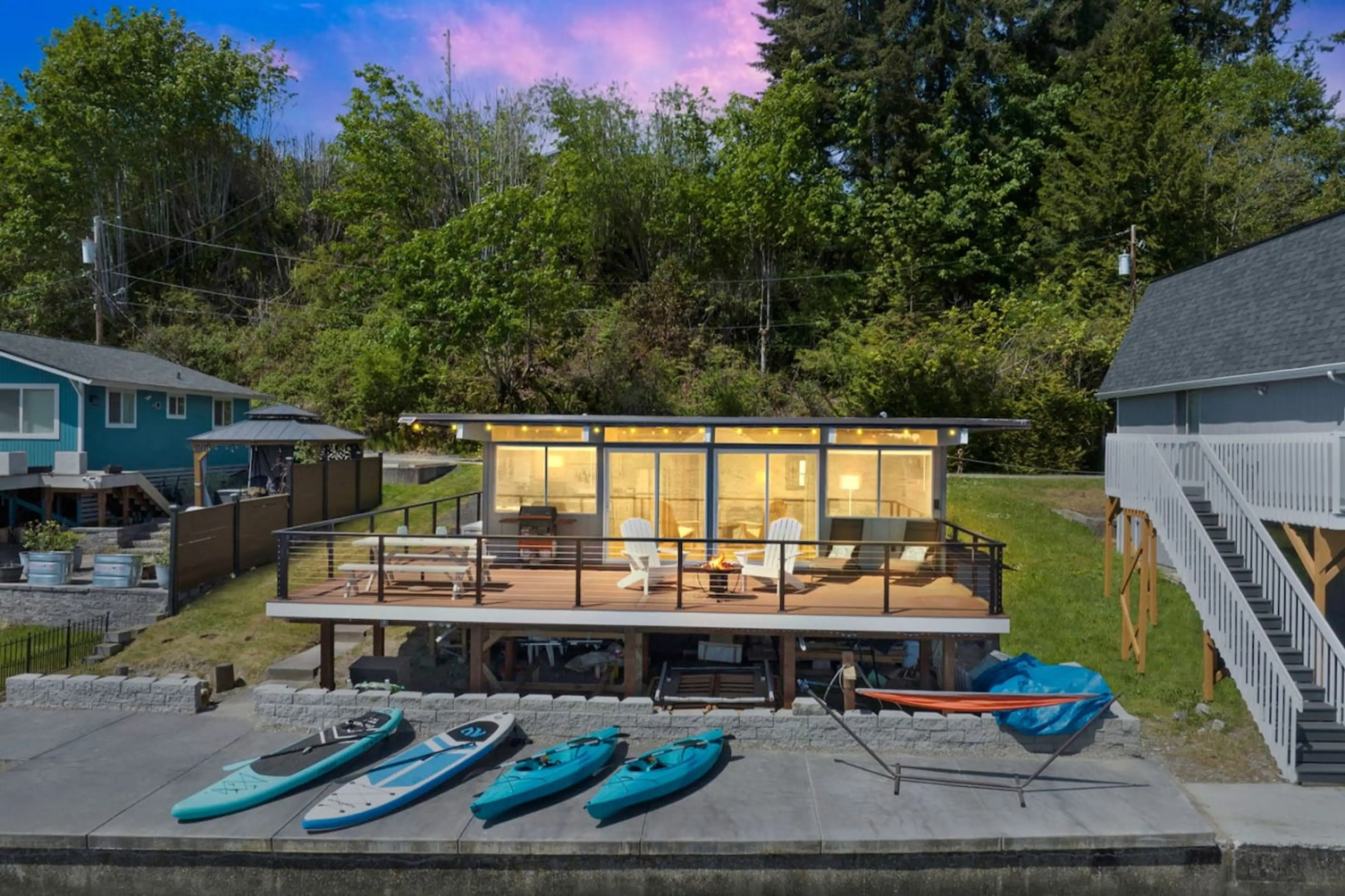 Perfect place to get away with girlfriends. The view is amazing - nice large deck to sit and talk and watch the water. The roof hangs over the deck just enough that if it’s raining you can be under cover. All the beds were comfy and plush with nice clean cozy linens. It wasn’t quite warm enough outside to use the kayaks but would have loved to. We would definitely come back!